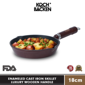 Enameled Cast Iron Skillet Luxury Wooden Handle 18cm