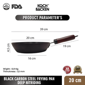 KOCH&BACKEN Black Carbon Frying Pan Deep Nitriding 20cm