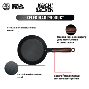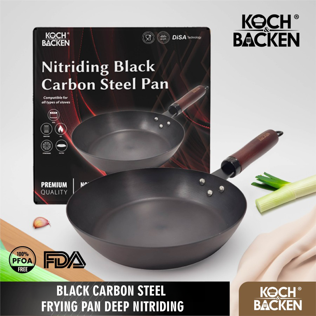 Fry Pan Black Carbon terbaru dari Koch&Backen terbuat dari material Baja Hitam kualitas terbaik yang cocok digunakan sehari-hari untuk memasak didapur. Cocok juga digunakan untuk alat masak di restoran chinesse food maupun tempat makan pada umumnya.