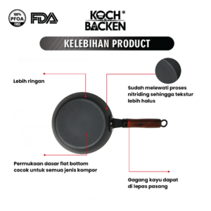 - Lapisan anti lengket black carbon terbentuk dari minyak yang alami sehingga aman bagi tubuh.