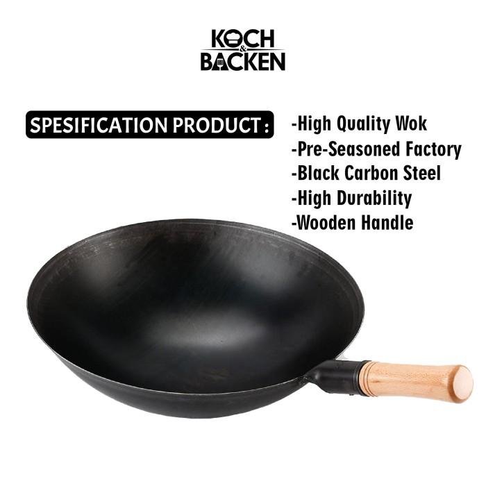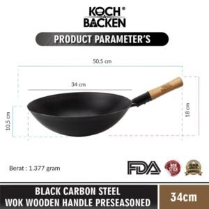 Carbon Steel Wok terbaru dari Koch & Backen terbuat dari material Baja kualitas terbaik yang cocok digunakan sehari-hari untuk memasak di dapur. Cocok juga digunakan untuk alat masak di restoran chinesse food karena cita rasa masakan yang dihasilkan jauh lebih harum dan masakan lebih cepat matang sehingga dapat menghemat waktu memasak.
