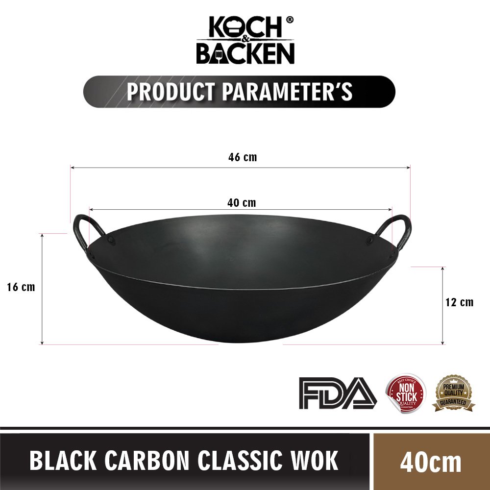 KOCH&BACKEN Black Carbon Wok Classic Preseasoned 40cm