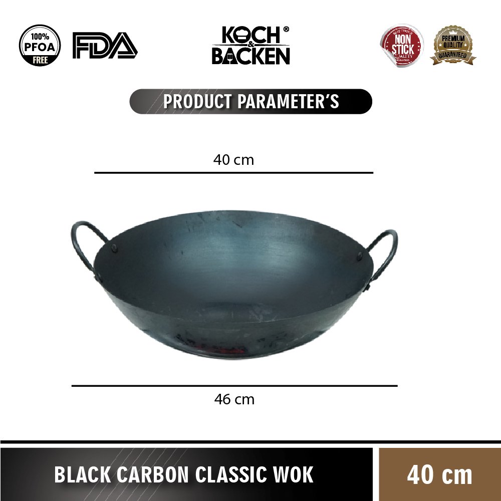 Carbon Steel Wok terbaru dari Koch & Backen terbuat dari material Baja kualitas terbaik yang cocok digunakan sehari-hari untuk memasak di dapur. Cocok juga digunakan untuk alat masak di restoran chinesse food karena cita rasa masakan yang dihasilkan jauh lebih harum dan masakan lebih cepat matang sehingga dapat menghemat waktu memasak.