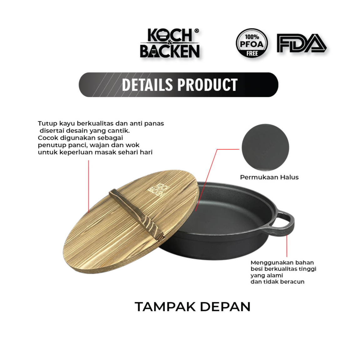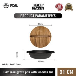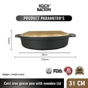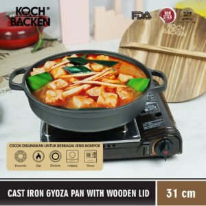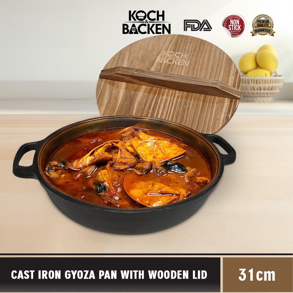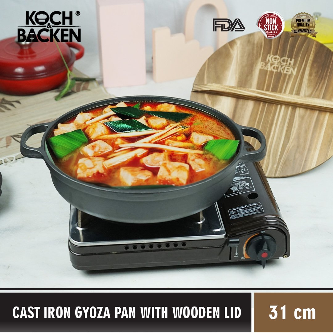 KOCH&BACKEN Cast Iron Gyoza Pan with Wooden Lid – Sukiyaki Hotpot Cast Iron 31cm
