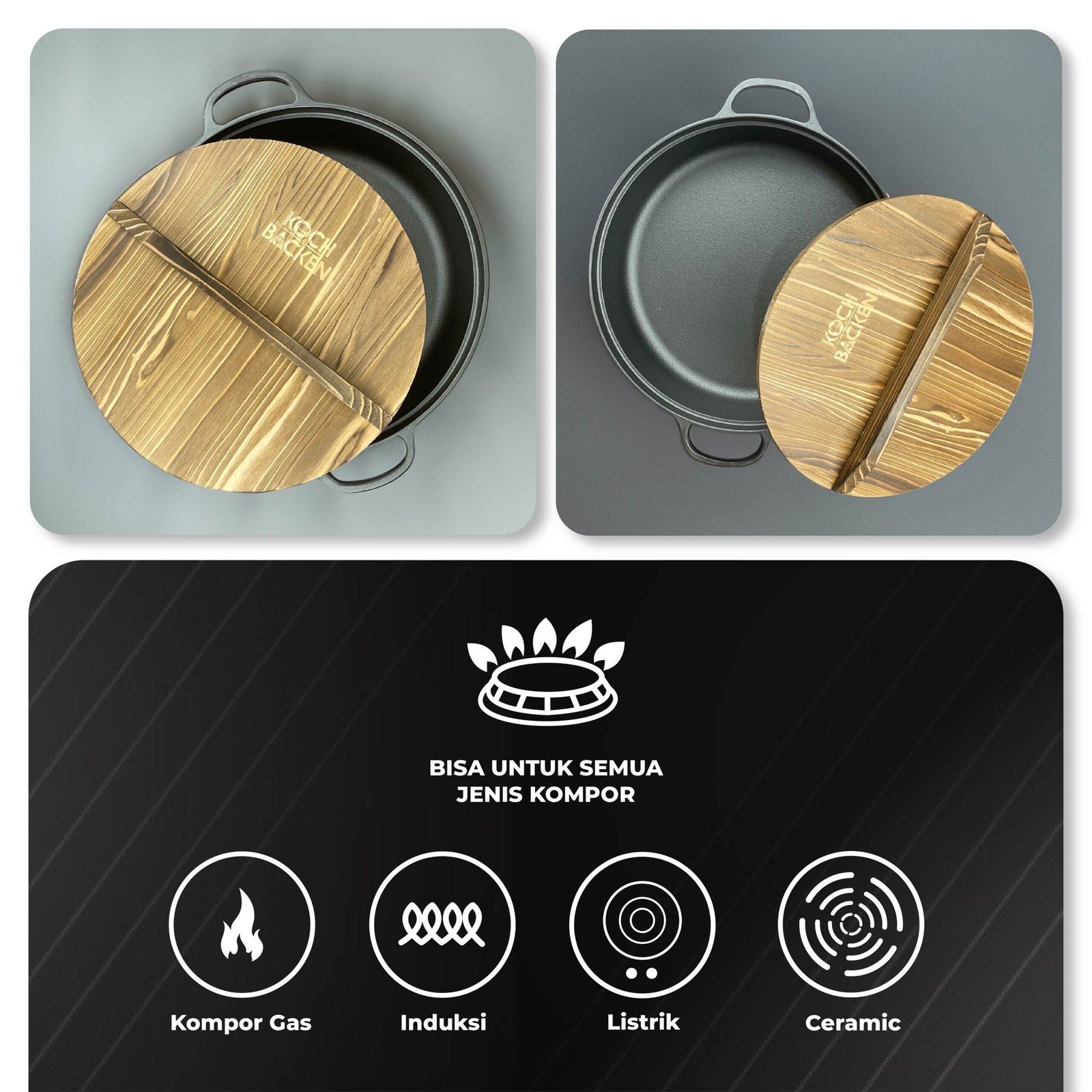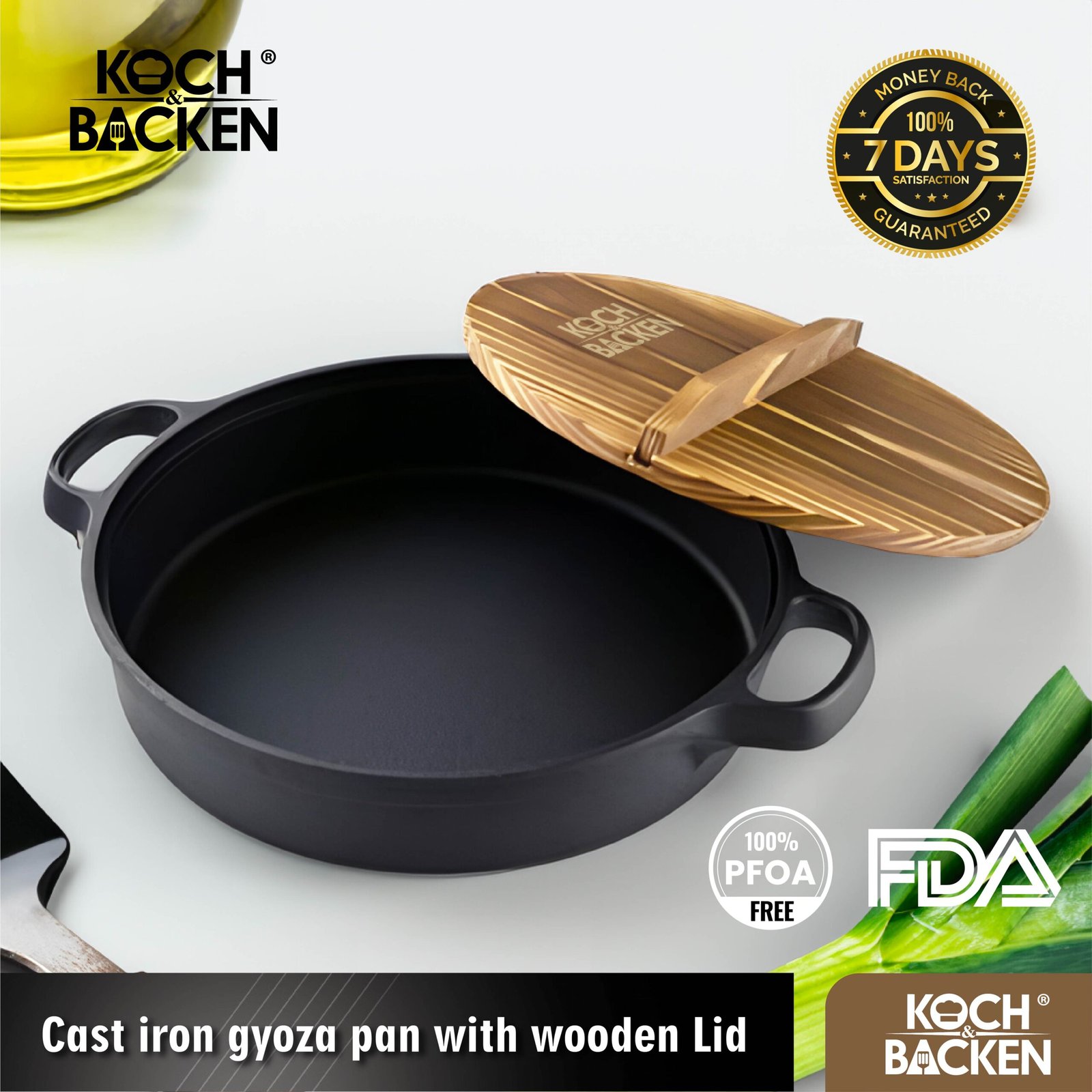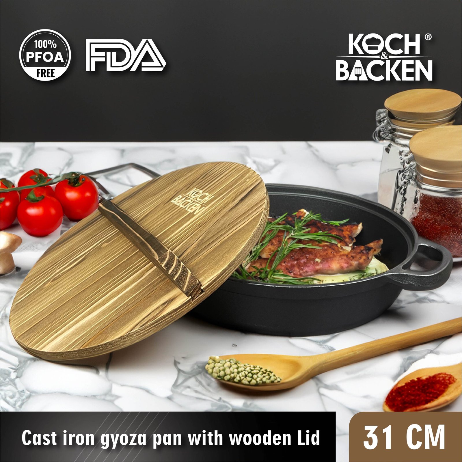 KOCH&BACKEN Cast Iron Gyoza Pan with Wooden Lid – Sukiyaki Hotpot Cast Iron 31cm