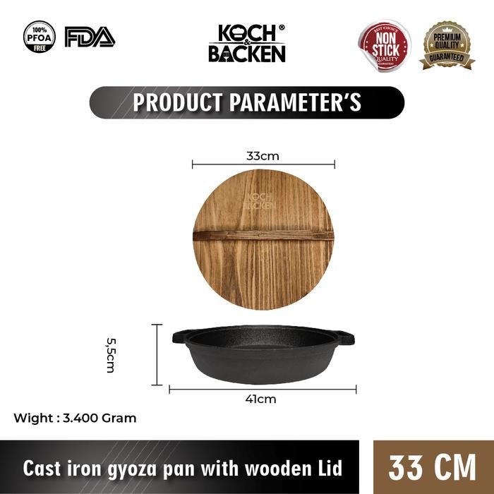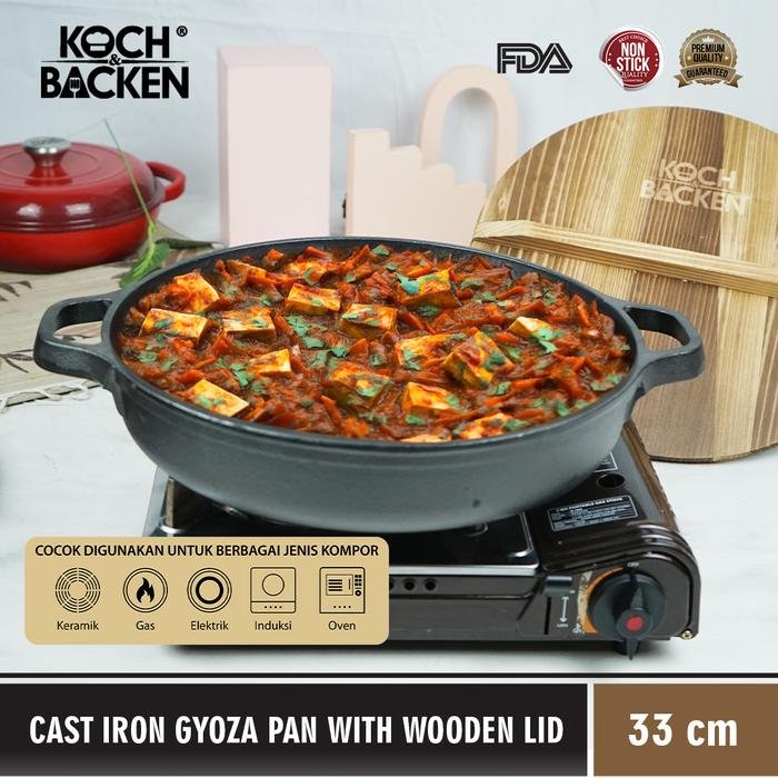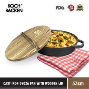 KOCH&BACKEN Cast Iron Gyoza Pan with Wooden Lid – Sukiyaki Hotpot Cast Iron 33cm