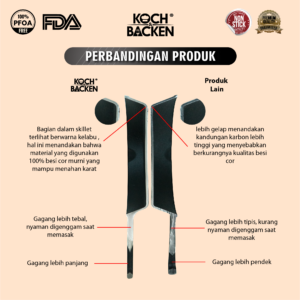 - Semakin sering digunakan akan membuat cast iron bebas lengket