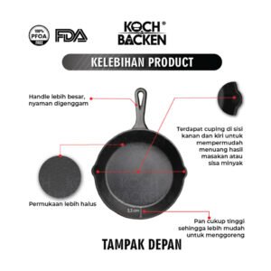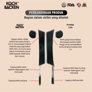 Semua Produk Koch & Backen Cast Iron Cookware dibuat dgn Cor Mesin Digital Disa Technology, menjamin bentuk yg presisi dan rapi serta ketebalan yg sama, menghasilkan penyebaran panas yg merata. Murni Besi Cor tanpa lapisan dan tebal sehingga masakan cepat matang dengan sempurna dan dapat menahan/menyimpan panas lebih lama.