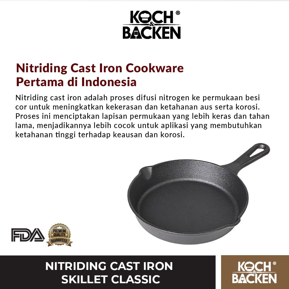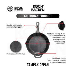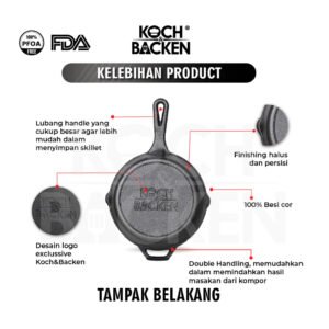 Semua Produk Koch & Backen Cast Iron Cookware dibuat dgn Cor Mesin Digital Disa Technology, menjamin bentuk yg presisi dan rapi serta ketebalan yg sama, menghasilkan penyebaran panas yg merata. Murni Besi Cor tanpa lapisan dan tebal sehingga masakan cepat matang dengan sempurna dan dapat menahan/menyimpan panas lebih lama.