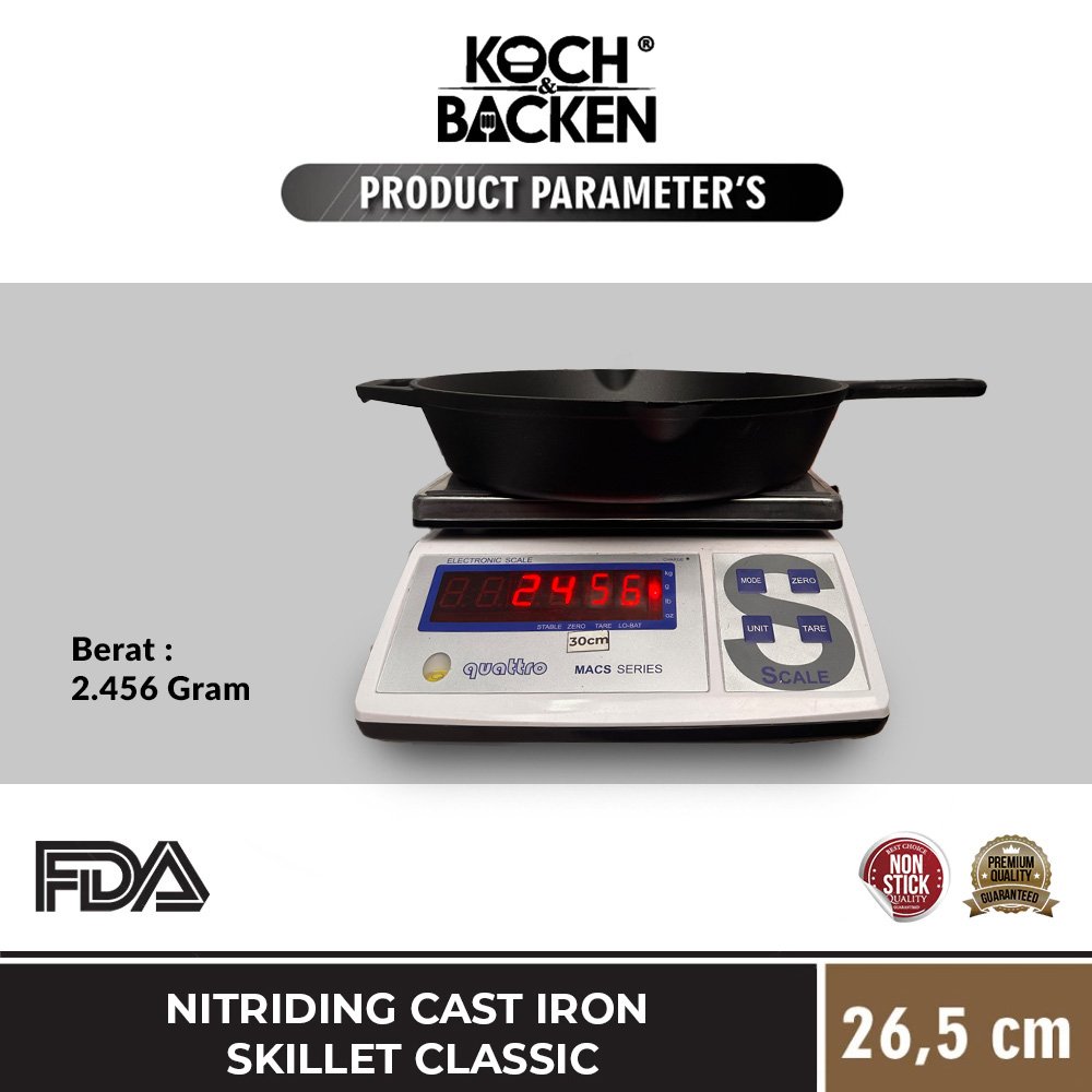 KOCH&BACKEN Cast Iron Skillet Clasic Preseasoned 26,5cm