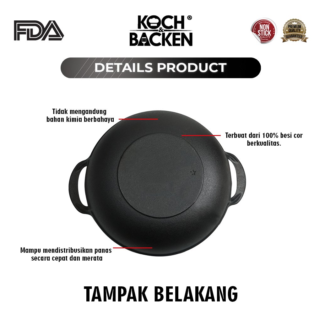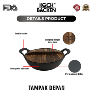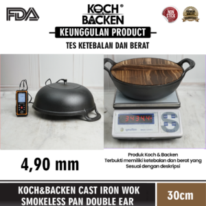 Cast Iron Wok dibuat dengan Cor Mesin Digital Disa Technology, menjamin bentuk yang presisi dan rapi serta ketebalan yang sama serta menghasilkan penyebaran panas yang merata.