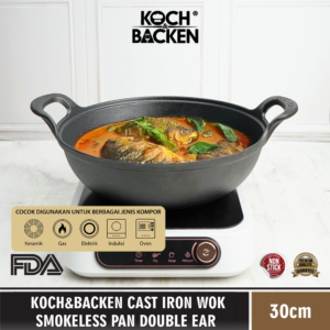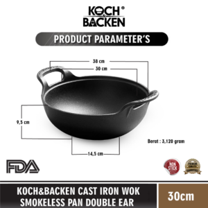 Cast Iron Wok Smokeless Pan Double Ear ini di design sedemikian rupa sebagai alat masak anti lengket dengan tampilan yang elegant dengan new design yang mempuni. Untuk series ini sudah melewati proses pre-seasoned yang menjadikan alat masak ini tebal dan tahan lama.