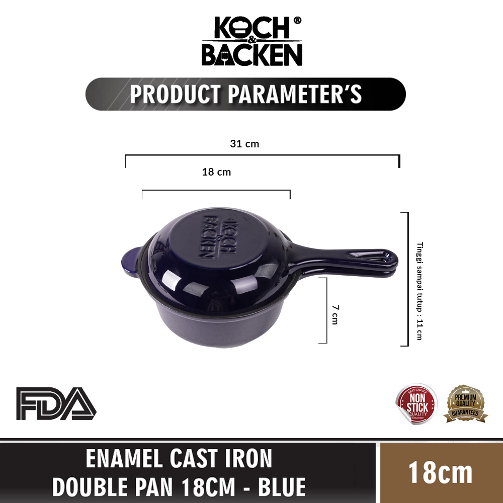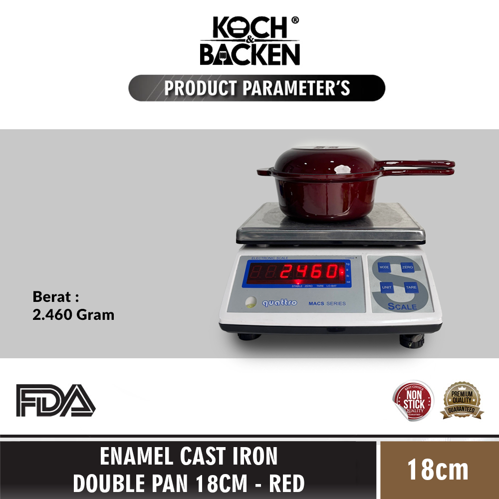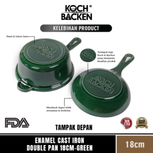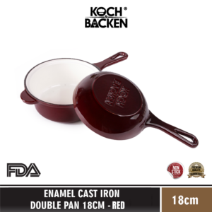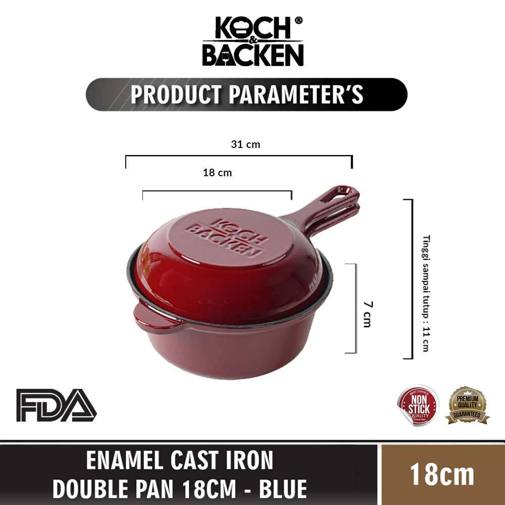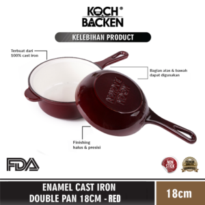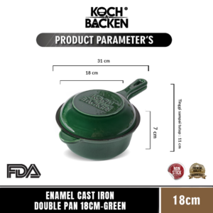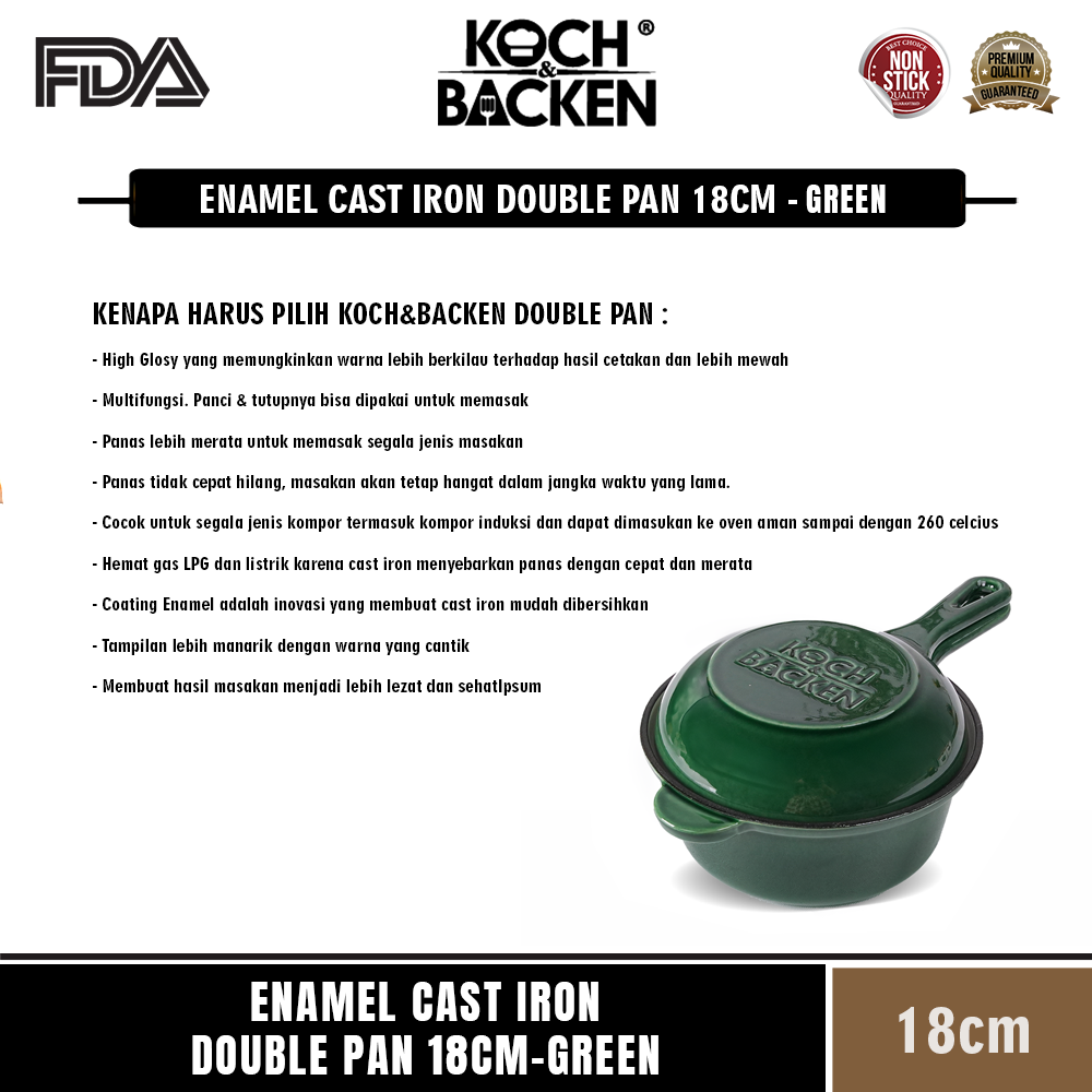 Koch & Backen Enamel Cast Iron memungkinkan koki rumahan untuk membuat makanan terbaik mereka. Terbuat dari besi cor berenamel anti lengket untuk makanan yang lebih lezat dan sehat. Bahan besi cor yang tahan lama akan bertahan bersama dengan lapisan luar berenamel yang akan melindungi peralatan memasak anda. Dapat digunakan untuk tumis, panggang, rebus, dan lainnya.
