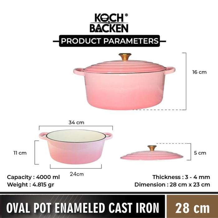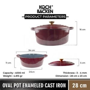 KOCH&BACKEN Enamel Cast Iron Oval Pot Sourdough Bread Pan 28cm