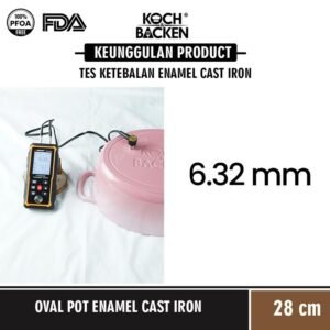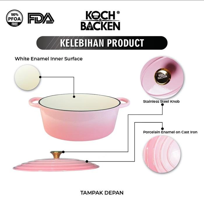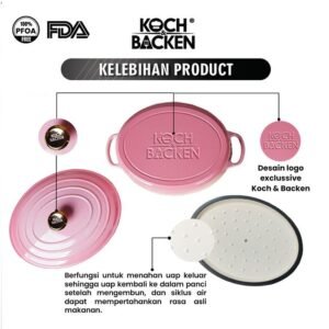 Koch & Backen Enamel Cast Iron memungkinkan koki rumahan untuk membuat makanan terbaik mereka. Terbuat dari 100% bahan besi cor berenamel anti lengket untuk makanan yang lebih lezat dan sehat. Bahan besi cor yang tahan lama akan bertahan bersama dengan lapisan luar berenamel yang akan melindungi peralatan masak anda dari goresan. Dapat digunakan untuk menumis, memanggang, merebus dan yang lainnya dalam satu alat masak.