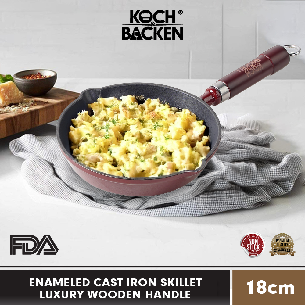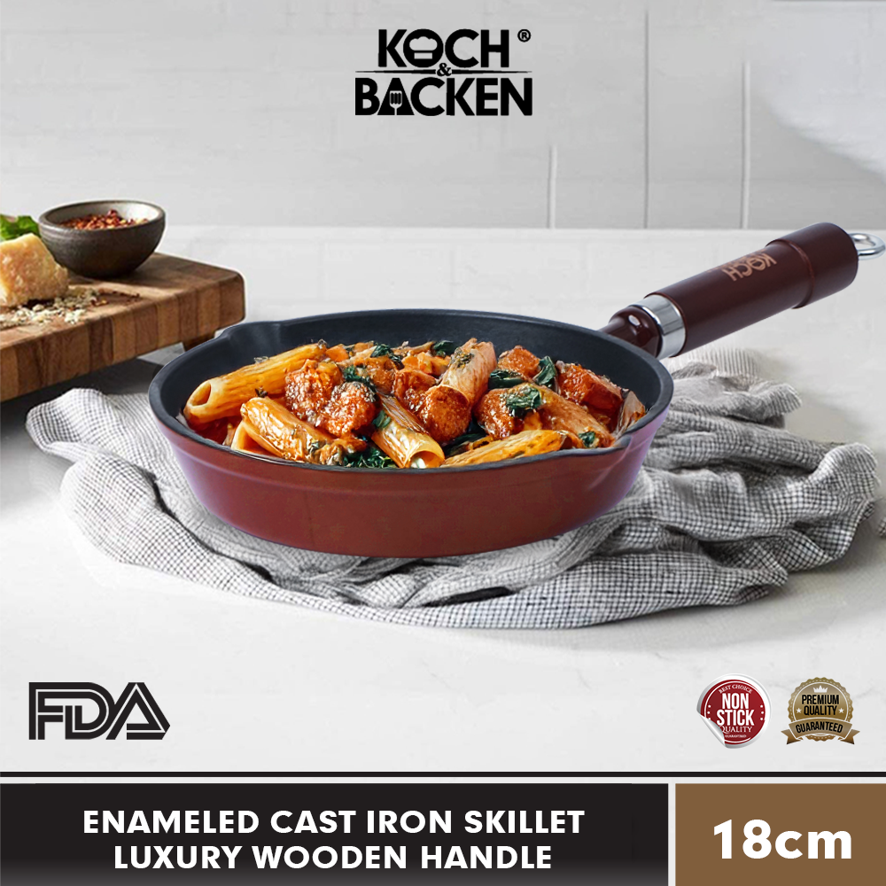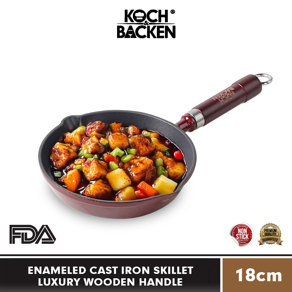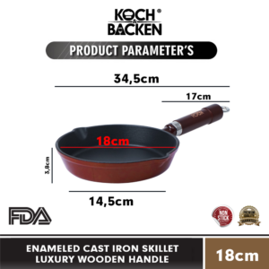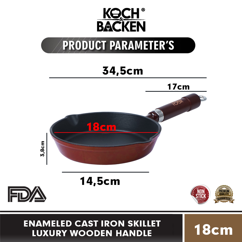 KOCH&BACKEN Enameled Cast Iron Skillet Luxury Wooden Handle 18cm