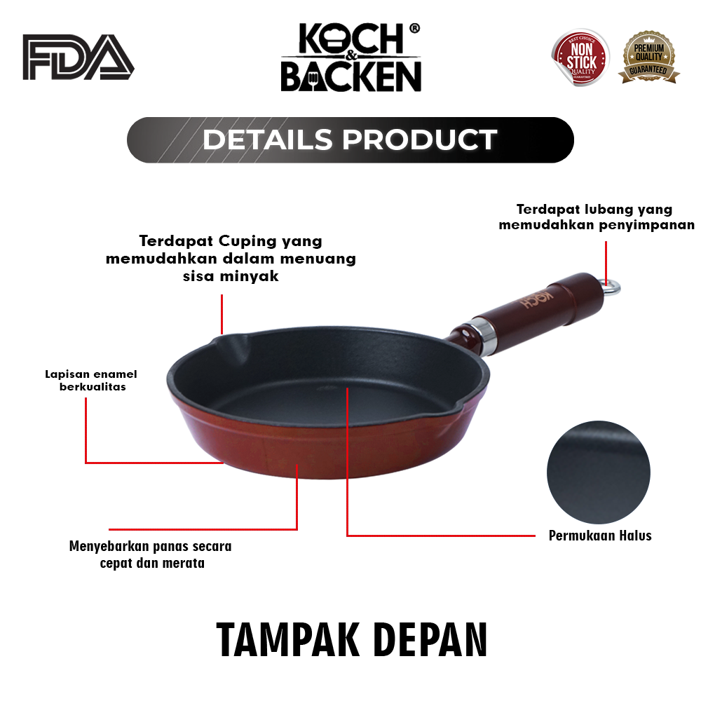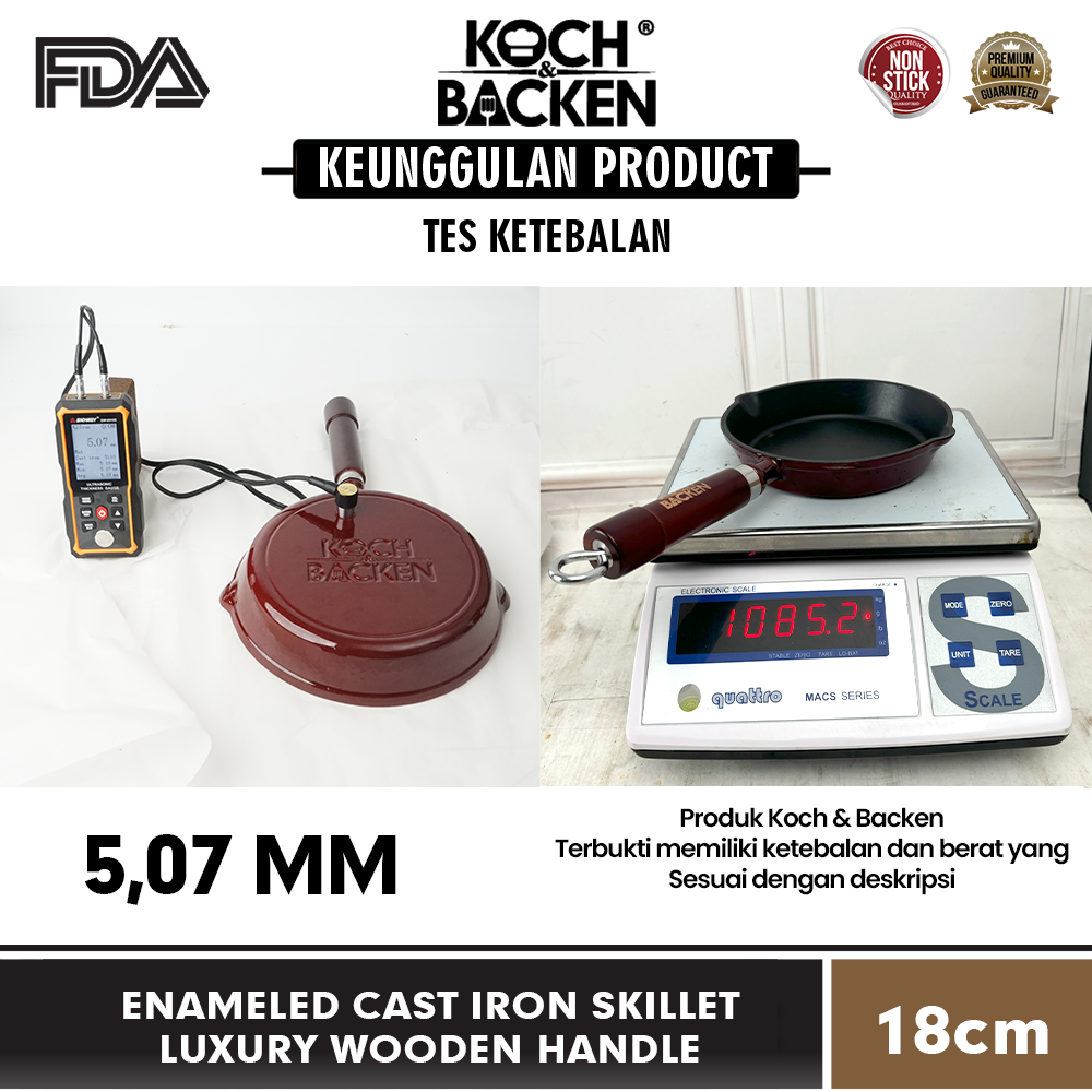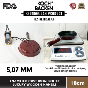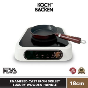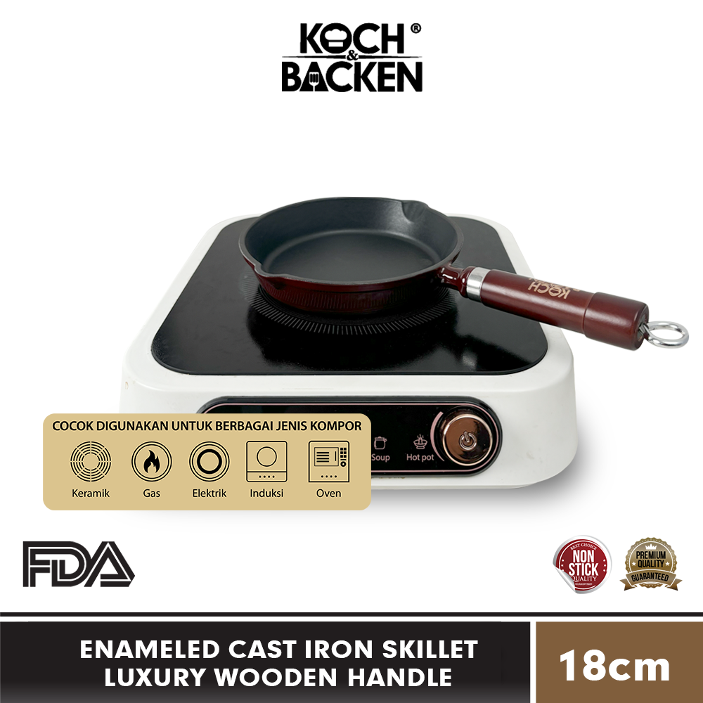 KOCH&BACKEN Enameled Cast Iron Skillet Luxury Wooden Handle 18cm