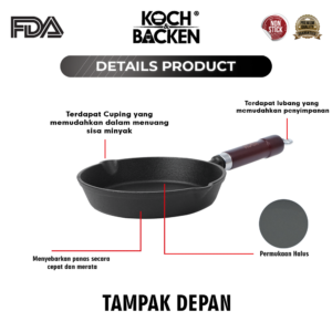 • Lapisan anti lengket cast iron terbentuk dari minyak yang alami sehingga aman bagi tubuh