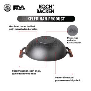 Cast Iron Wok Flat Bottom ini di design sedemikian rupa sebagai alat masak anti lengket dengan tampilan yang elegant dengan new design yang mempuni.
