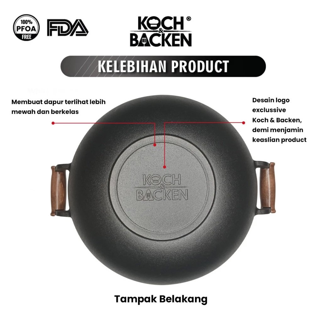 Design handle yang terbuat dari kayu beech premium yang menjadikan handle pada wok ini, tidak akan panas saat digenggam, Mempunyai kualitas yang tebal yang menjadikan tampilan lebih elegant.
