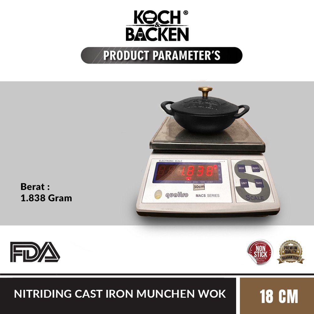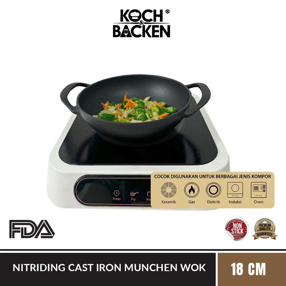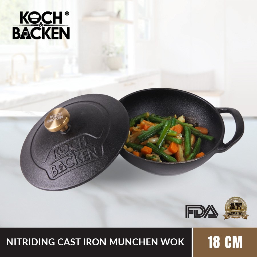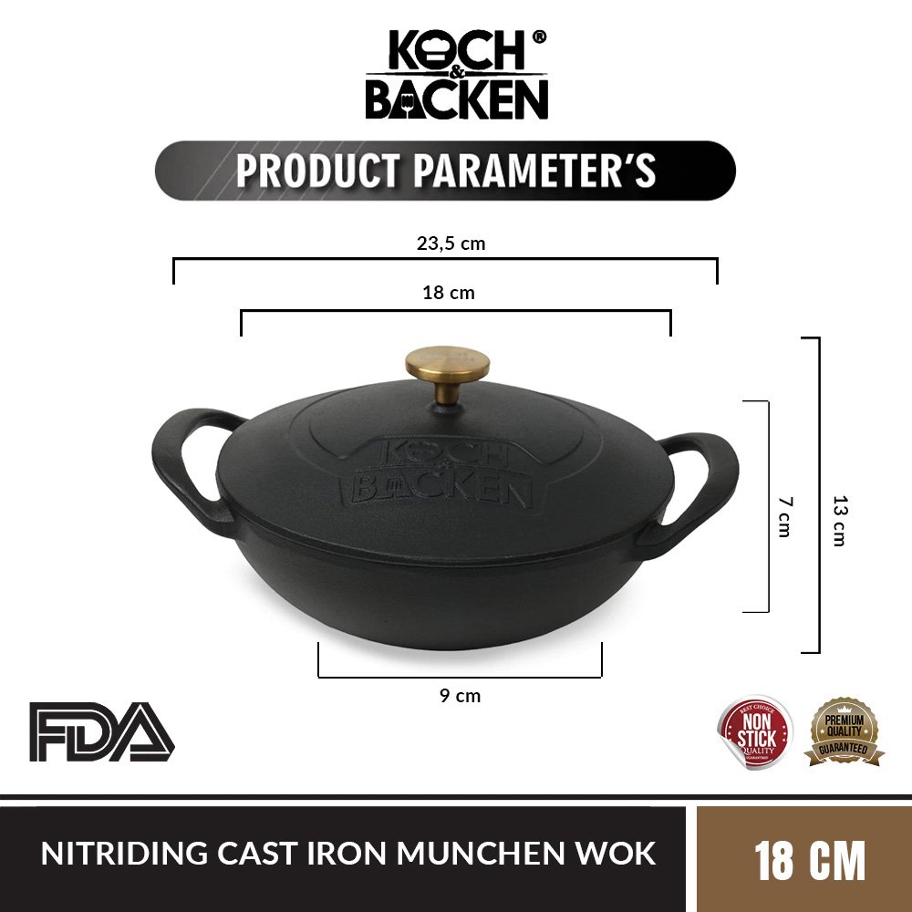 KOCH&BACKEN Nitriding Pre-seasoned Cast Iron Wok Munchen Series 18cm
