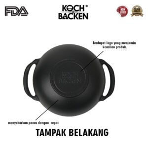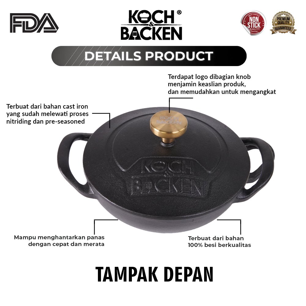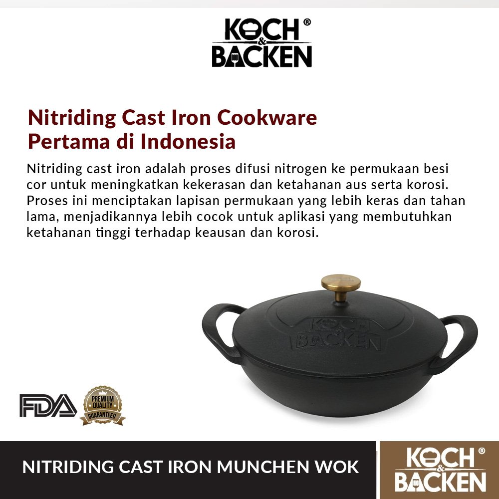 KOCH&BACKEN Nitriding Pre-seasoned Cast Iron Wok Munchen Series 26cm – Wajan Kuali Panggangan Besi Cor Anti Lengket